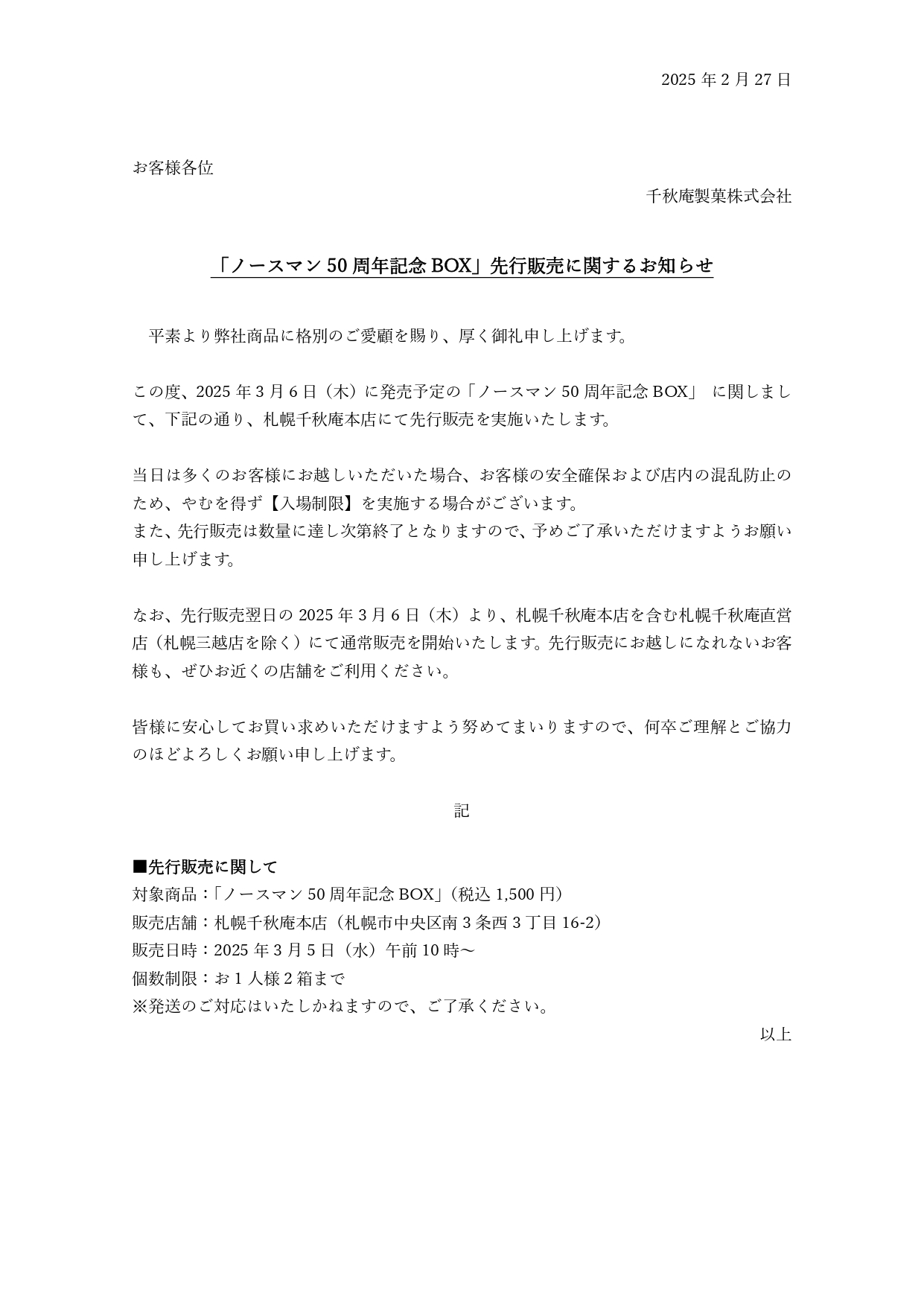 「ノースマン50周年記念BOX」先行販売に関するお知らせ