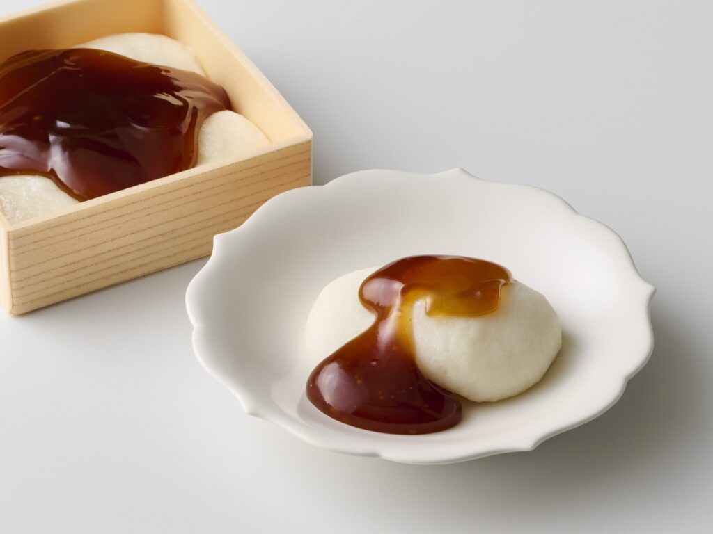 こしあんを包んでいない餅のみの“やわ餅”に、みたらし餡をかけました。