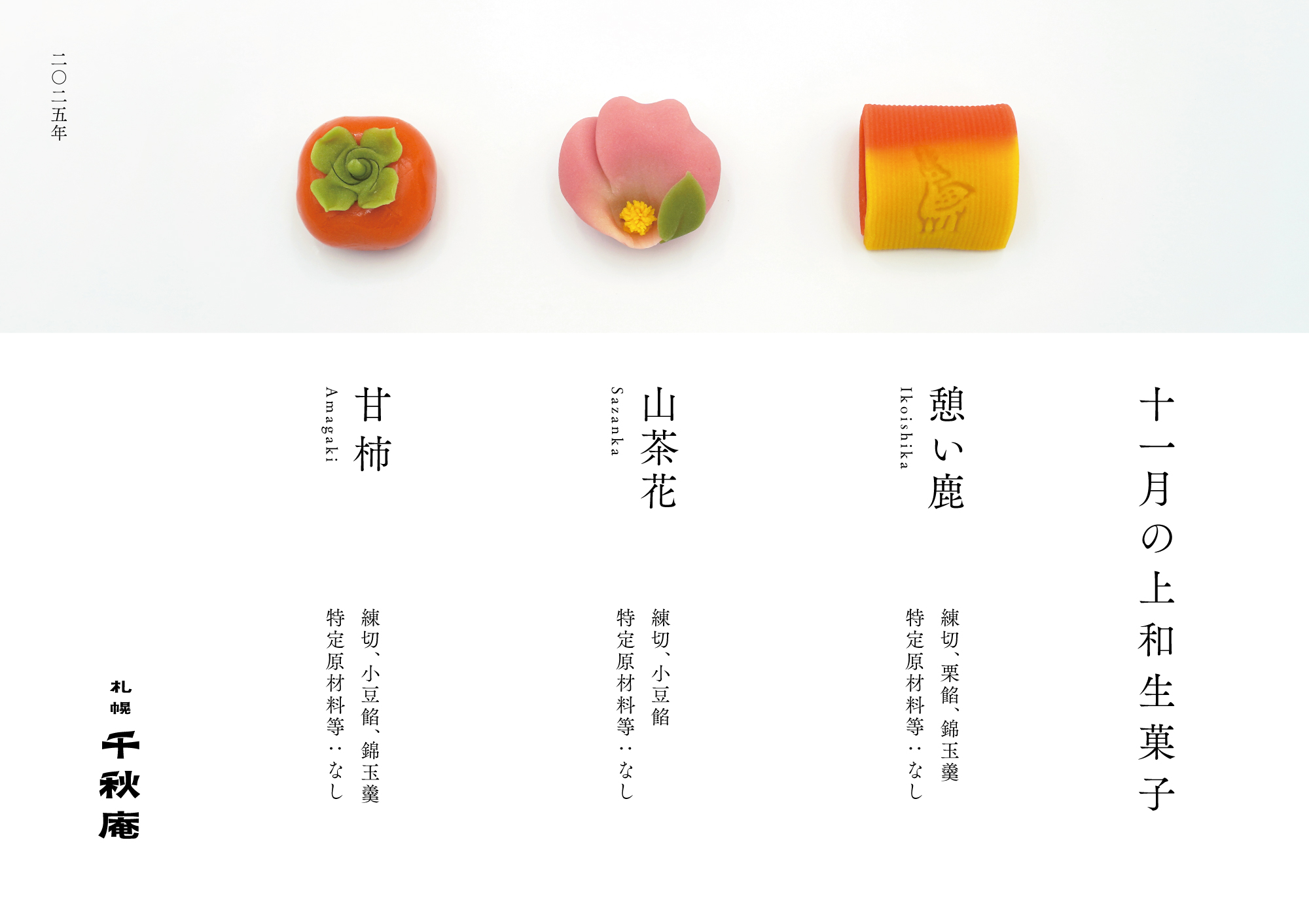 2025年11月01日 十一月の上和生菓子(本店限定) 札幌千秋庵本店では、毎月の季節の上和生を販売しています。 【価格】1個 330円(税込) 【販売期間】11月1日~ 【販売店舗】札幌千秋庵本店 限定 ※数量限定のため売切の際は予めご了承ください。 ※詳細につきましては、札幌千秋庵本店までご連絡お願いいたします。