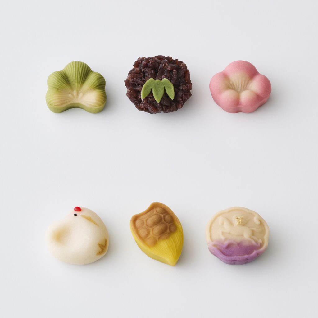 お正月の縁起物をかたどった華やかな和菓子が、店頭に勢ぞろい!